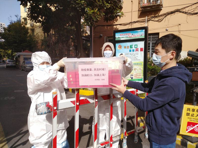 人民網(wǎng)上海3月31日電 (唐小麗、馬作鵬)“這些避疫香囊是我的一點(diǎn)心意?!?月30日下午,高晴將她自制的100多只避疫香囊,轉(zhuǎn)送給虹口區(qū)曲陽(yáng)路街道赤峰二小區(qū)正在抗疫的志愿者們。
