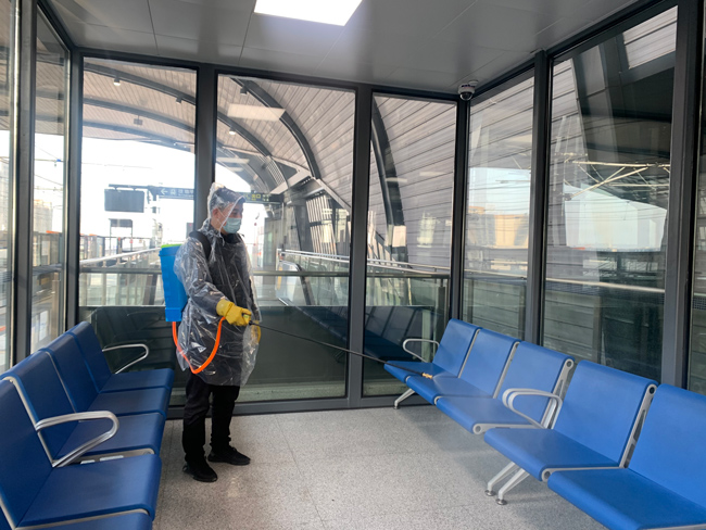 在站臺(tái)、站廳等重點(diǎn)區(qū)域,盡管沒(méi)有了客流,海寧運(yùn)營(yíng)公司根據(jù)車(chē)站實(shí)際需求維持了每日3至4次的消殺頻次。