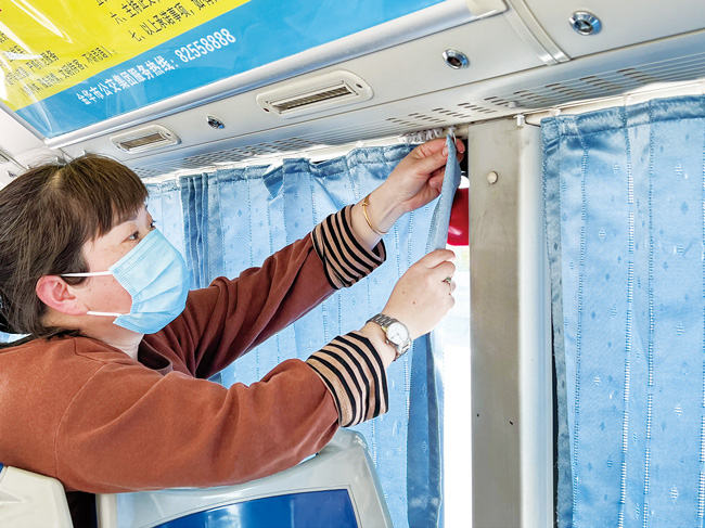 4月6日,金華市區(qū)523路公交車開始安裝遮陽簾。隨著天氣逐漸轉(zhuǎn)熱,金華金東所有公交車將陸續(xù)安裝上遮陽簾。車隊(duì)長周英飛說,安裝了遮陽簾,乘車舒適度會(huì)大為改善。(李建林)