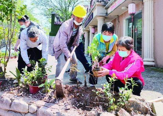 近日,金華市區(qū)城中街道楊思嶺社區(qū)企退人員、黨員志愿者開展“愛心植樹、綠色環(huán)?!睂?shí)踐活動,在公共花壇泥土裸露的地方,補(bǔ)栽梔子花、風(fēng)尾花等花卉,美化社區(qū)環(huán)境。(時寬兵)