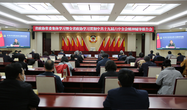 河北省政協(xié)舉辦常委集體學習暨全省政協(xié)學習貫徹中共十九屆六中全會精神輔導報告會對中共十九屆六中全會精神進行系統(tǒng)深入解讀。胡澤瑞攝