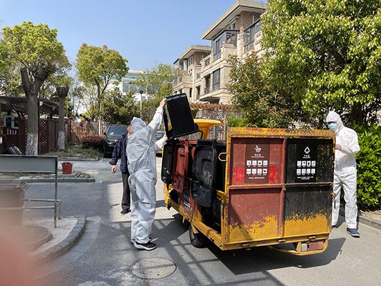 除了保安,保潔人員也缺位了。4月7日,姚書記找居委會(huì)要來十幾個(gè)垃圾桶,組織志愿者收集垃圾。因?yàn)?天沒收過垃圾,垃圾又多又臭。高杰、趙連均、俞衛(wèi)忠等志愿者沖在前面,他們一改平日“西裝革履”的打扮,化身“保潔員”,當(dāng)被問及“4天不收的垃圾臭不臭”時(shí),他們笑笑說,“又臟又臭是真的,不過大家都換位思考,我們就收幾次而已,環(huán)衛(wèi)工人每天干才辛苦?!敝螅^(qū)每天就有鄰居輪流收垃圾,做到日產(chǎn)日清。一位鄰居在群里反映巡邏時(shí)發(fā)現(xiàn)路上落葉較多時(shí),大家又一呼百應(yīng),拿出自家的掃帚,一起把小區(qū)道路打掃干凈。