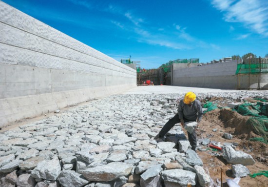 這些不規(guī)則的干砌石可以防止通水后河水掏刷建筑物,造成建筑物地基不穩(wěn)。本報記者 白繼開攝
