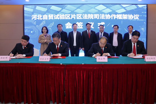 河北自貿(mào)試驗(yàn)區(qū)片區(qū)法院司法協(xié)作框架協(xié)議會(huì)簽儀式現(xiàn)場。 張亞寧攝
