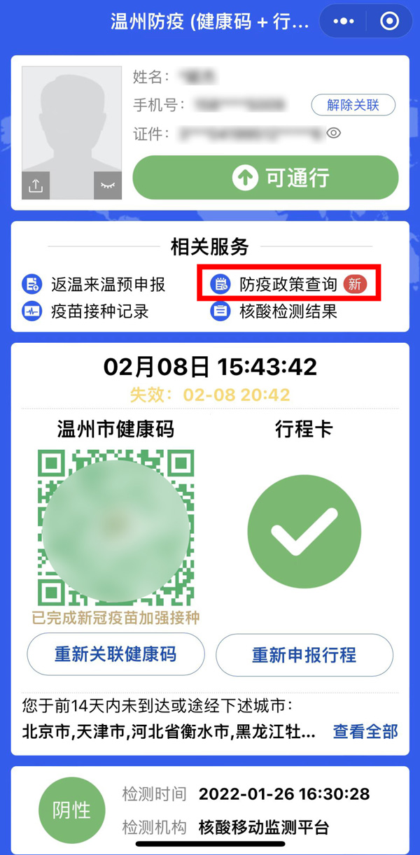 溫州防疫碼界面