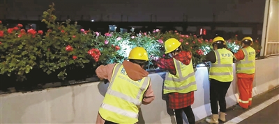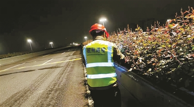 “結(jié)合常規(guī)巡查,新增加負(fù)責(zé)人、管理員、班組三級巡查模式,通過車巡看整體、人巡觀細(xì)節(jié),檢查市管高架綠化全域路線,分別做到每月、每半月、每兩天一次全覆蓋,對于高架主線和重點(diǎn)匝道做到每天巡查?!焙贾菔谐枪芫质姓行南嚓P(guān)負(fù)責(zé)人介紹,2022年的“高架花廊”巡查主要以綠化長勢、灌溉情況、病蟲害、排水設(shè)施滲漏等內(nèi)容為主,對隱患問題第一時間發(fā)現(xiàn),第一時間處理。