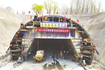 國(guó)道G102線市區(qū)段改建工程角山隧道明洞襯砌施工現(xiàn)場(chǎng),正在緊張施工。 本組照片由河北日?qǐng)?bào)記者孫也達(dá)攝