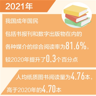 2021年我國成年國民綜合閱讀率為81.6%(新數(shù)據(jù) 新看點(diǎn))