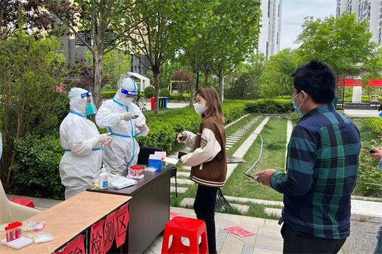 志愿者協(xié)助醫(yī)務(wù)人員開展核酸檢測。 劉琦攝