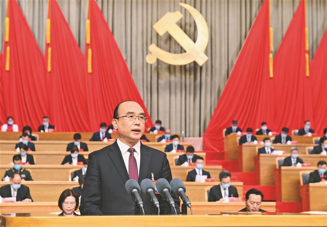 4月29日,許勤在中國共產(chǎn)黨黑龍江省第十三次代表大會上作題為《奮進新征程 再創(chuàng)新輝煌 為實現(xiàn)黑龍江全面振興全方位振興而奮斗》的報告。記者 郭俊峰 邵國良攝