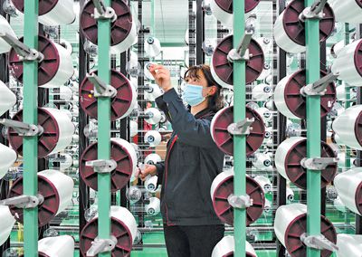 江西省贛州市上猶縣新材料科創(chuàng)產(chǎn)業(yè)園,工人在加工生產(chǎn)電子級玻纖復合材料。