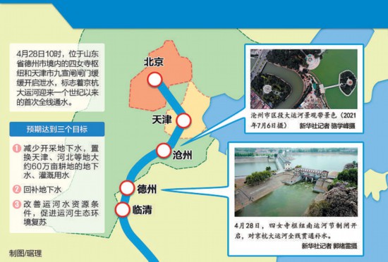 此次大運河全線貫通補(bǔ)水于4月14日啟動,以京杭大運河黃河以北707公里河段作為主要貫通線路,河北省境內(nèi)河長373公里,占補(bǔ)水總河長的53%。