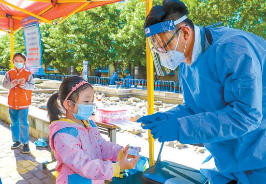 昨天清晨,天剛蒙蒙亮,鄭爍就到達(dá)集結(jié)點(diǎn)位。核酸檢測開始后,鄭爍主要負(fù)責(zé)現(xiàn)場秩序維護(hù)引導(dǎo)、掃碼登記、查驗(yàn)健康寶、協(xié)助老年人做好信息登記等工作?!白蛱毂本┑淖罡邭鉁剡_(dá)到32攝氏度,核酸檢測期間,我們志愿者小組為上千位居民提供了服務(wù),這期間一個(gè)跟著媽媽來做核酸的小女孩每路過一位志愿者都會主動(dòng)說一聲‘叔叔阿姨,辛苦了!’聽著孩子甜美的問候,再累也值了!”鄭爍告訴記者。