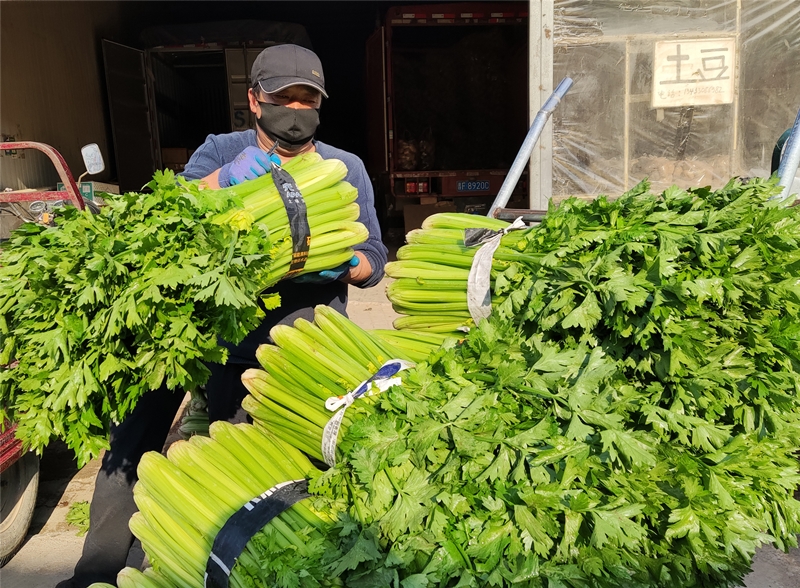 “市場(chǎng)每天大約回貨是40多輛車,蔬菜一百七八十噸,水果一百四五十噸。蘋果、梨、香蕉等常見水果及白菜、西紅柿、黃瓜等日常蔬菜供應(yīng)充足,可以充分滿足市民需求?!笔袌?chǎng)副經(jīng)理王健說(shuō)。