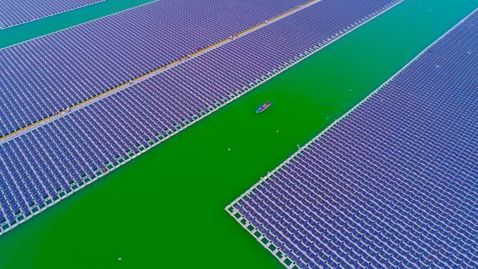 山東陵城公司彩虹共產(chǎn)黨員服務(wù)隊(duì)對(duì)丁莊水庫光伏電站的光伏發(fā)電設(shè)施、供用電線路進(jìn)行檢查(宋偉龍 攝)
