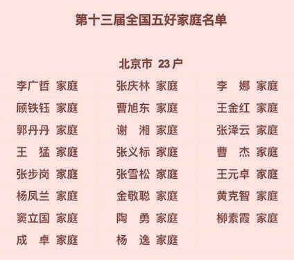 24戶北京家庭入選2022年全國(guó)最美家庭