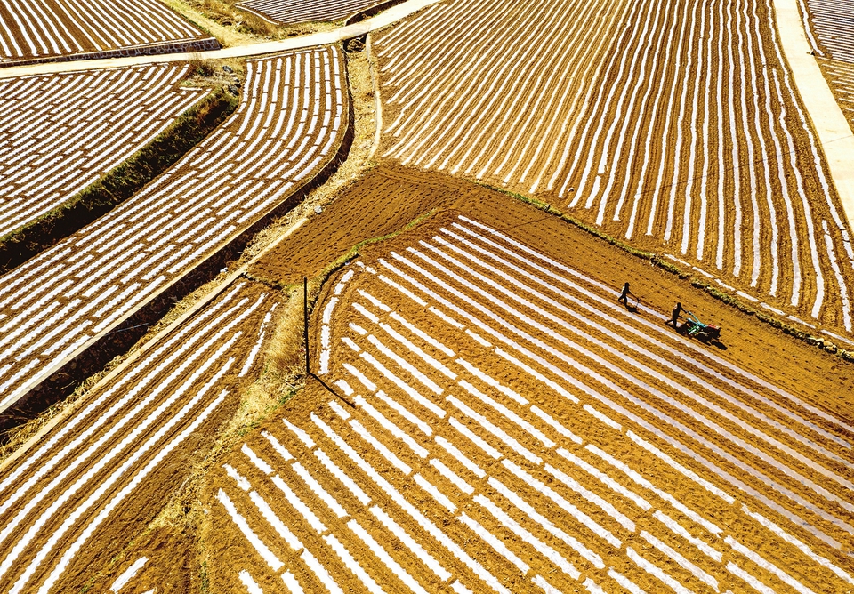5月15日,晉中市左權(quán)縣下莊村鋪滿地膜的農(nóng)田在陽光照射下,構(gòu)成一幅錦繡太行的詩畫田園景致。近年來,左權(quán)縣積極落實(shí)糧食直補(bǔ),地膜、農(nóng)機(jī)財政補(bǔ)貼的政策,極大地調(diào)動了農(nóng)民種糧的積極性,糧食連續(xù)獲得豐收。同時,通過農(nóng)旅融合,詩畫般的田園風(fēng)光吸引了不少游客,助推農(nóng)民增收。(邢蘭富)