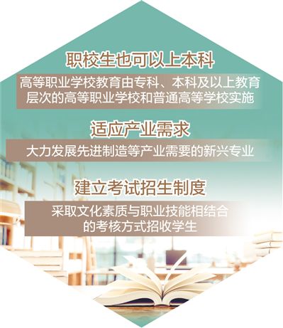 2019年以來(lái),教育部批準(zhǔn)設(shè)置了32所職業(yè)本科學(xué)校,打破了職業(yè)教育止步于專(zhuān)科層次的“天花板”?!跋乱徊剑覀円^續(xù)支持一批優(yōu)質(zhì)的高職專(zhuān)科學(xué)校獨(dú)立升格為職業(yè)本科學(xué)校,指導(dǎo)符合條件的高職專(zhuān)科學(xué)校舉辦本科層次的職業(yè)教育?!苯逃柯殬I(yè)教育與成人教育司司長(zhǎng)陳子季表示。
