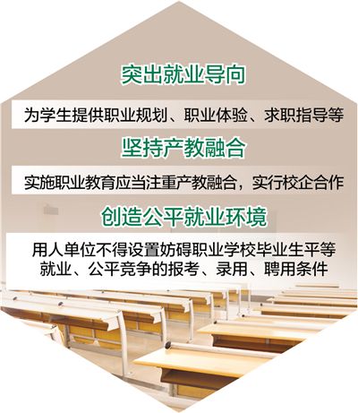 “職業(yè)教育是與普通教育具有同等重要地位的教育類(lèi)型,是國(guó)民教育體系和人力資源開(kāi)發(fā)的重要組成部分”,新修訂的職業(yè)教育法開(kāi)宗明義,作出重要判斷——職業(yè)教育是“類(lèi)型”教育,不是“層次”教育。類(lèi)型教育的明確定位如同一根紅線,串起職業(yè)教育改革的方方面面,許多難題得以破解。
