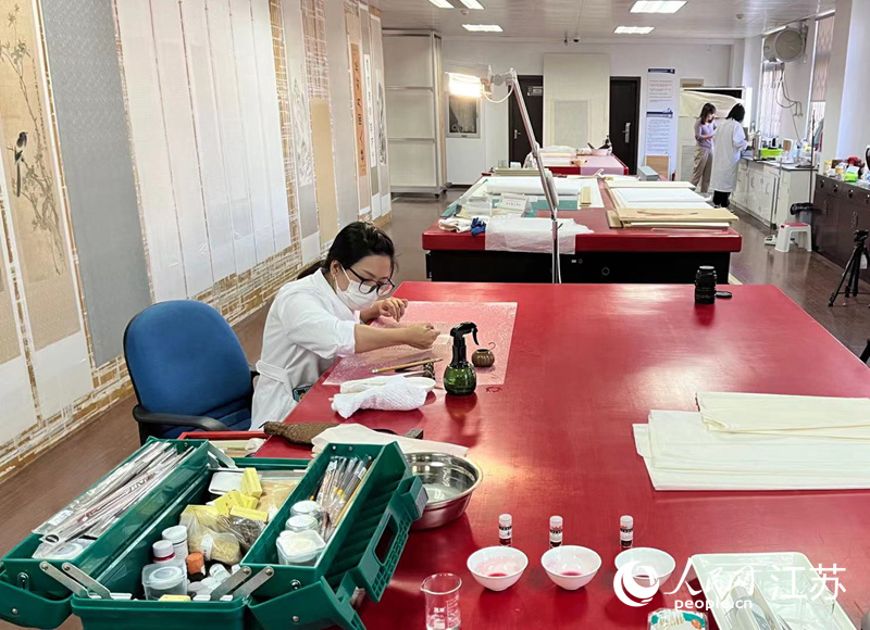 現(xiàn)在,越來越多的年輕人加入到這份彰顯情懷和定力的工作中來。陳思燚說,“我們就是‘書畫醫(yī)生’,修復(fù)書畫的過程,就是給文物看病治療的過程。”目前,在南博從事書畫修復(fù)工作的團隊已有9人,主要以80后、90后為主力。