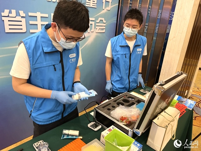 活動現場對消費者點名的化妝品產品進行快速檢測。人民網 吳舟攝