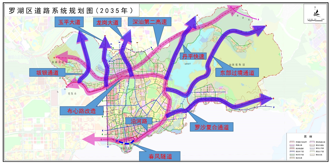 其中,“一環(huán)六射”備受關(guān)注?!耙画h(huán)”由濱海大道(春風(fēng)路隧道)、沿河路、愛國路高架、布心路(布心路下沉)、深汕第二高速構(gòu)成;“六射”包括羅沙路(復(fù)合通道)、東部過境通道、玉平大道、龍崗大道、丹平快速、坂銀通道。