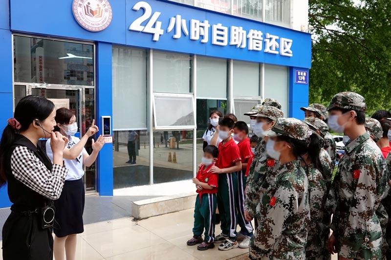 廣西河池市金城江區(qū)特殊教育學(xué)校的孩子們?cè)趨⒂^圖書24小時(shí)自助借還區(qū)。高東風(fēng)攝