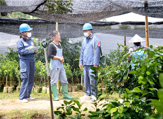 黨員服務(wù)隊(duì)了解基地果苗生產(chǎn)用電需求。陳心誠攝