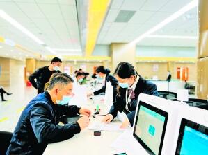 清鎮(zhèn)市政務(wù)服務(wù)中心工作人員在指導(dǎo)企業(yè)辦事。