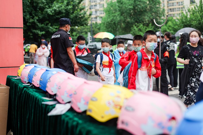 臨近6月,天氣漸熱,騎電動車接送孩子上、放學的家長增多,但仍有部分家長未重視頭盔對交通參與者的保護作用,騎行途中未嚴格執(zhí)行戴頭盔的法律規(guī)定。為進一步提高廣大師生、家長的交通安全意識,增強學生自我保護能力,共同守護校園交通安全。為此,家、校、警聯(lián)合行動,組織了這次活動。