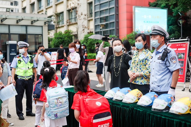 “出門著急了”“忘戴了”“天熱了,戴著麻煩”“不好意思,下次一定戴好頭盔”……5月25日清晨,西安高新交警聯(lián)合高新一小共同行動,開展“一盔一帶”安全守護行動,在校門口教育、提醒騎行送孩子上學而未給孩子佩戴頭盔的家長重視交通出行安全。活動現(xiàn)場,學校家委會還組織為沒有戴頭盔的孩子贈送了頭盔。當天,高新區(qū)30余所學校安全負責人全程觀摩了此次活動。