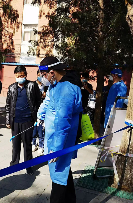 4月26日,周慶接到緊急通知,轄區(qū)公司一名員工被定為新冠肺炎密切接觸者。他迅速穿上防護(hù)裝備奔赴現(xiàn)場(chǎng),配合防疫部門(mén)落實(shí)封控措施、組織核酸檢測(cè)、維持現(xiàn)場(chǎng)秩序,工作有條不紊地開(kāi)展著。短短幾天后,30日凌晨又初診一名新冠肺炎陽(yáng)性病例,小區(qū)立刻進(jìn)行封控管理。