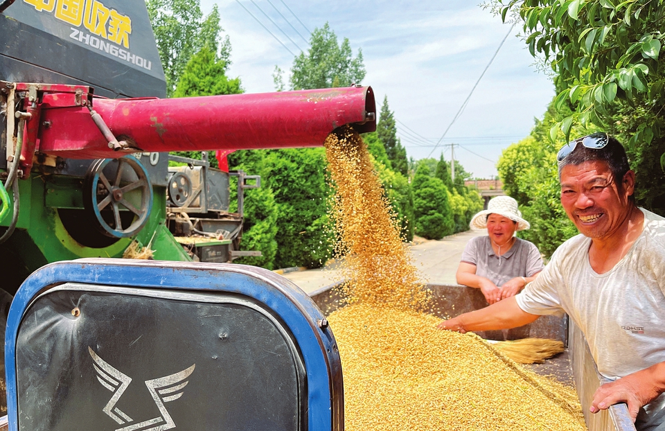 5月31日,侯馬市上馬街道,聯(lián)合收割機(jī)正在作業(yè)。近日,臨汾市300余萬畝小麥陸續(xù)進(jìn)入收割期,各地?fù)屪マr(nóng)時(shí),確保顆粒歸倉。李現(xiàn)俊攝