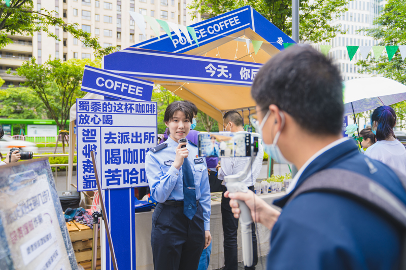 同時,隨著“坐在警務站里喝咖啡”話題持續(xù)火爆,公安民警將踐行“三能”要求與參與創(chuàng)意市集相結(jié)合,創(chuàng)新推出了“蜀黍請你喝咖啡 反詐知識帶回家”快閃活動,以更有活力、更接地氣、更潮流入時的方式,讓年輕群眾在學習知識的過程中,還能品嘗到香醇可口的咖啡。