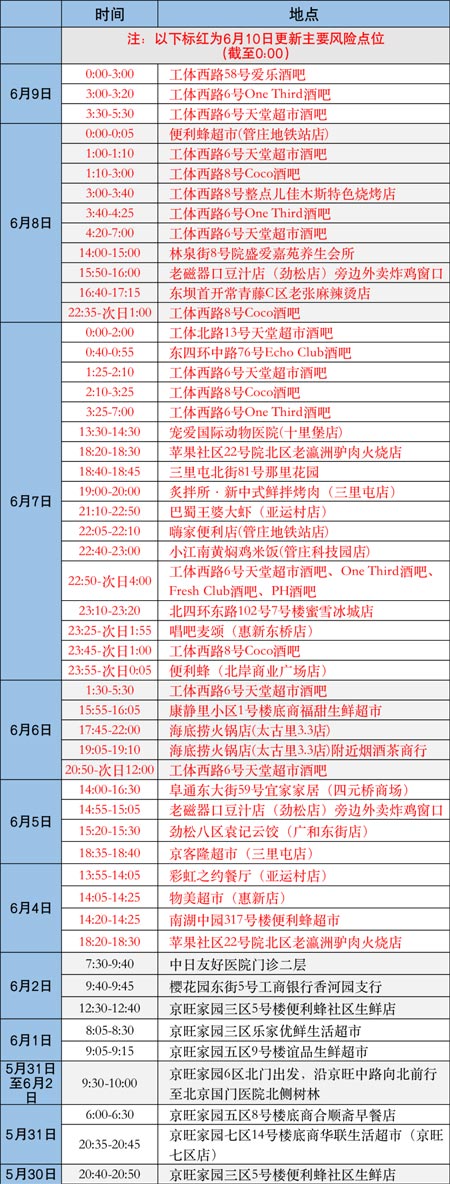 6月10日更新 北京朝陽區(qū)主要風險點位公布