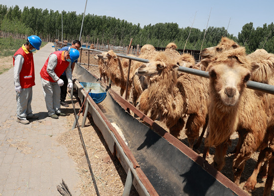 5月31日,國(guó)家電網(wǎng)冀北電力唐山“鋼鐵之魂”共產(chǎn)黨員服務(wù)隊(duì)隊(duì)員來(lái)到駱駝專業(yè)合作社檢查用電設(shè)備。 周宇翔攝