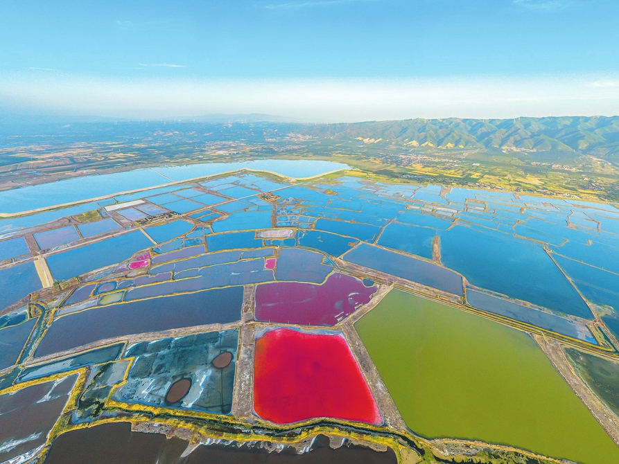 仲夏時(shí)節(jié),隨著氣溫升高,運(yùn)城鹽湖濕地呈現(xiàn)出色彩斑斕的美麗景觀。近年來,運(yùn)城市大力實(shí)施“退鹽還湖”“還湖于民”生態(tài)修復(fù)工程,把鹽湖從礦區(qū)、工業(yè)區(qū)變?yōu)樯鷳B(tài)保護(hù)區(qū)、旅游區(qū)。(閆鑫攝)