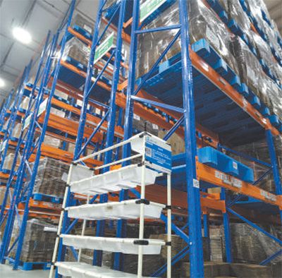 保稅倉內(nèi),裝滿進口醫(yī)藥產(chǎn)品的貨架。