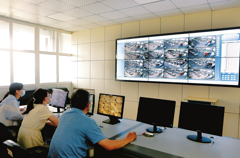 6月20日,晉城市鳳臺中學(xué)考點(diǎn),工作人員正通過監(jiān)控查看考場情況。