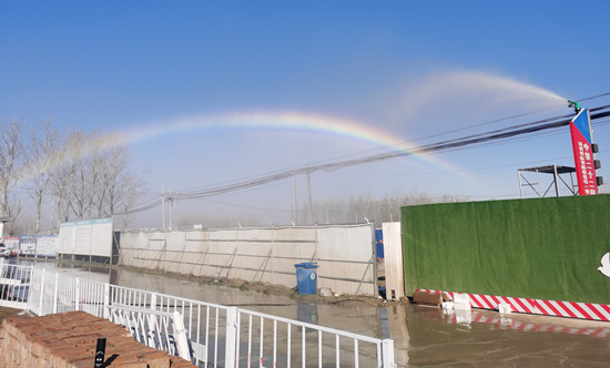 針對(duì)項(xiàng)目施工的這些特點(diǎn),項(xiàng)目部自主研發(fā)了高壓抑塵消防霧炮裝置,該裝置平時(shí)主要是抑制揚(yáng)塵,凈化空氣,遇到火災(zāi)時(shí)還是重要的消防工具。