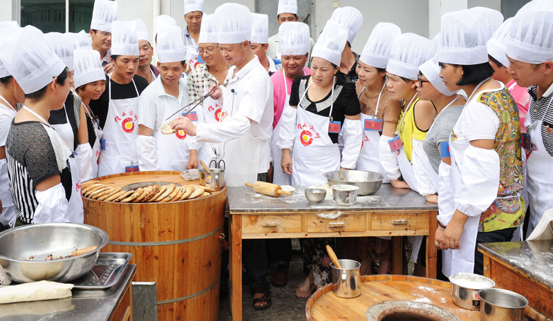 縉云燒餅師傅現(xiàn)場(chǎng)教學(xué)。麗水市委宣傳部供圖