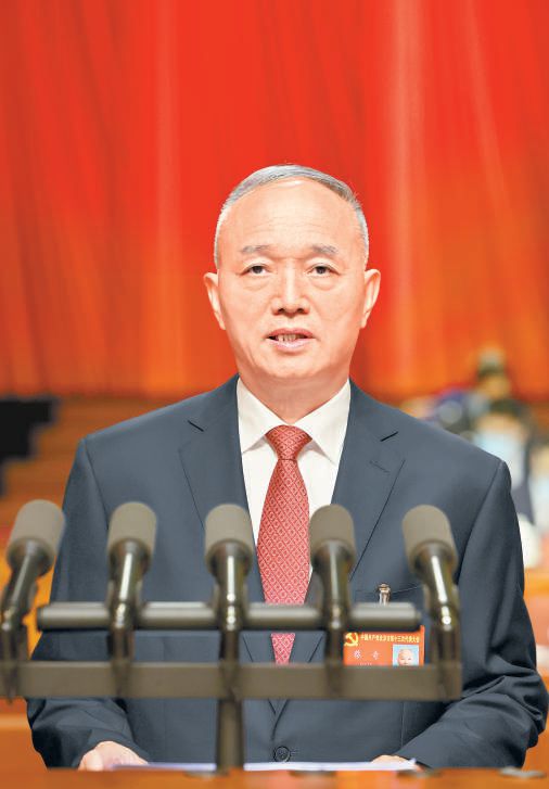 蔡奇同志代表十二屆市委作工作報(bào)告。本報(bào)記者 戴冰攝