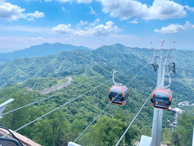 景區(qū)工作人員介紹,新纜車采用北京冬奧會國家高山滑雪中心進(jìn)口索道設(shè)備廠商的先進(jìn)設(shè)備,更安全,更便捷,更快速。纜車運(yùn)行速度顯著加快,只需數(shù)分鐘即可自山腳抵達(dá)長城,這也意味著,在游覽高峰期能夠減少游客排隊(duì)等待時(shí)間。此外,新纜車還采用了無障礙設(shè)計(jì),方便老幼及殘障人士乘坐。