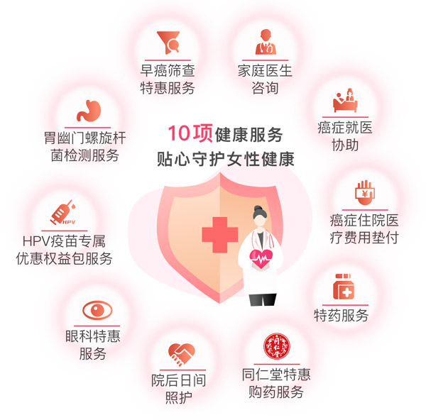 此外,“愛她?!边€為參保人提供HPV疫苗預(yù)約服務(wù)、胃幽門螺旋桿菌檢測服務(wù)、早癌篩查特惠服務(wù)、家庭醫(yī)生咨詢、癌癥就醫(yī)協(xié)助、癌癥住院醫(yī)療費(fèi)用墊付、特藥服務(wù)、同仁堂購藥特惠服務(wù)、院后日間照護(hù)等10項(xiàng)健康服務(wù),為女性和家人的健康全面保駕護(hù)航。