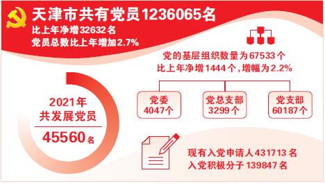 天津:黨員123.6萬名 黨的基層組織6.7萬個