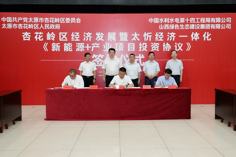 人民網(wǎng)太原7月13日電(記者 雷昊)今日,太原市杏花嶺區(qū)經(jīng)濟(jì)發(fā)展暨太忻經(jīng)濟(jì)一體化“新能源+產(chǎn)業(yè)項(xiàng)目投資協(xié)議”簽約儀式舉行。中國(guó)水利水電第十四工程局有限公司、山西綠色生態(tài)建設(shè)集團(tuán)有限公司與杏花嶺區(qū)人民政府簽訂《新能源+產(chǎn)業(yè)項(xiàng)目合作投資協(xié)議》,在傳統(tǒng)支柱行業(yè)轉(zhuǎn)型升級(jí)、基礎(chǔ)設(shè)施改造、綠色產(chǎn)業(yè)、鄉(xiāng)村振興、文旅產(chǎn)業(yè)、生態(tài)治理等領(lǐng)域開展深度合作,預(yù)計(jì)總投資80億元。