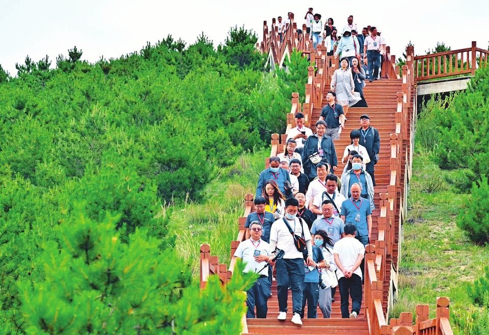7月17日,來自全國各地的游客在大同市云州區(qū)火山群國家地質(zhì)公園狼窩山景區(qū)暢游。近年來,云州區(qū)完成火山群綠化30萬畝,建設火山旅游路50多公里,配套建設了火山地質(zhì)廣場、火山觀景臺、火山地質(zhì)公園博物館等,深受游客青睞。(劉通 王中勛攝)