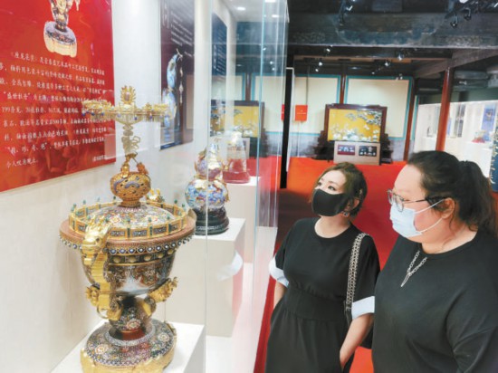 昨天,“匠心筑夢共創(chuàng)未來——燕京八絕非遺創(chuàng)新精品展暨中國工藝美術(shù)大師張同祿景泰藍(lán)傳承作品特展”在千年古剎承恩寺北京燕京八絕博物館開幕。觀眾品鑒了《座龍花薰》《富貴恒通》《花漫春和》《智趣》等二十余件題材豐富廣泛、釉質(zhì)細(xì)膩華美、造型多姿多彩、立意莊重深遠(yuǎn)的景泰藍(lán)工藝精品。 本報記者 吳鏑攝