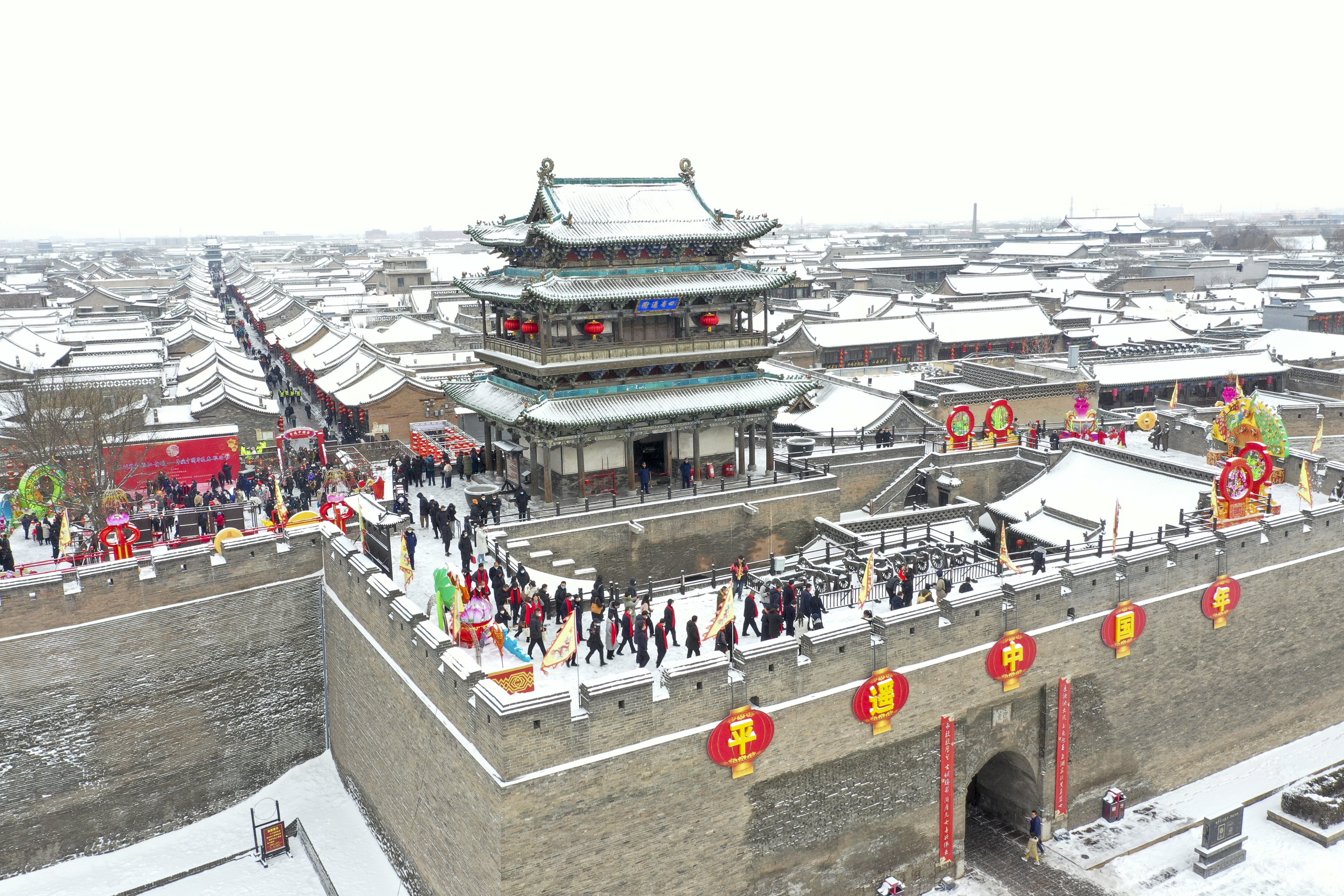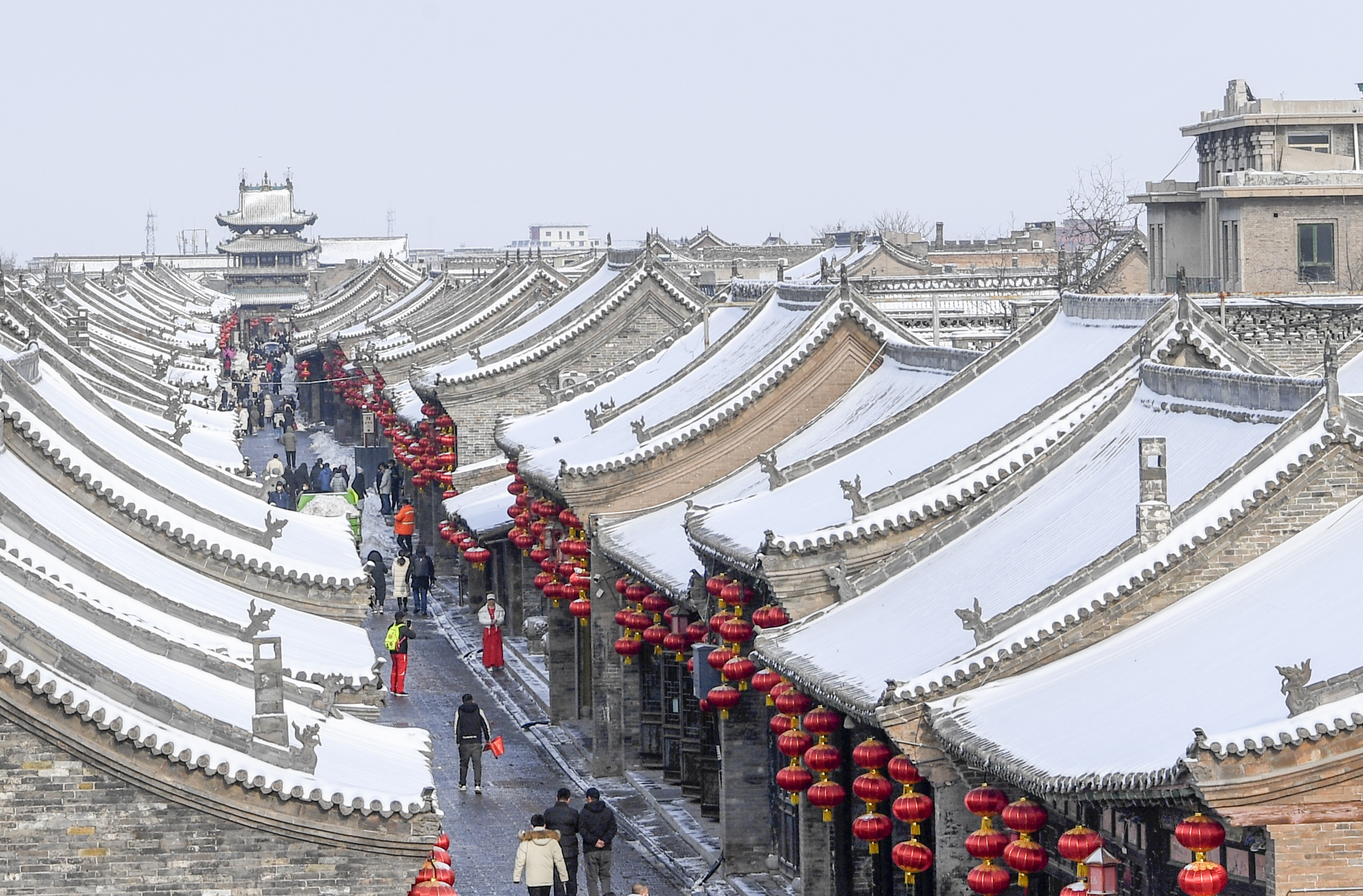 1月14日,山西省晉中市平遙縣迎來入冬以來首場降雪,雪中的平遙古城銀裝素裹,美景如畫。當日,恰逢2023年“我們的節(jié)日·春節(jié)——平遙中國年”活動在這里啟幕,來自各地的游客在雪中游覽古城,別有一番韻味。(梁生仁攝)