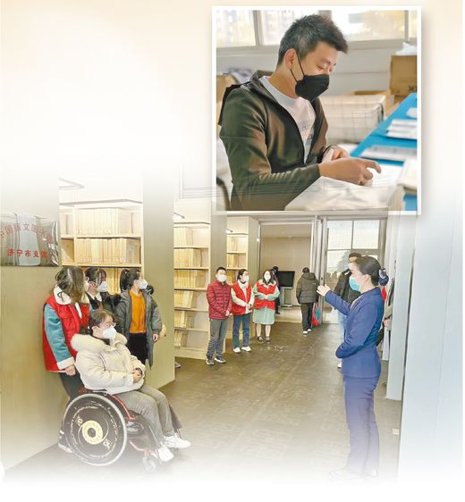 逛一圈,書架上,盲文書籍整齊排列,室內還配有盲用電腦、盲文點顯器?!拔覀冮_通了網上借書功能,快遞免費送書上門,讓有無障礙閱讀需求的讀者平等、方便地獲取知識?!奔蜗榭h圖書館館長任憲俊說。